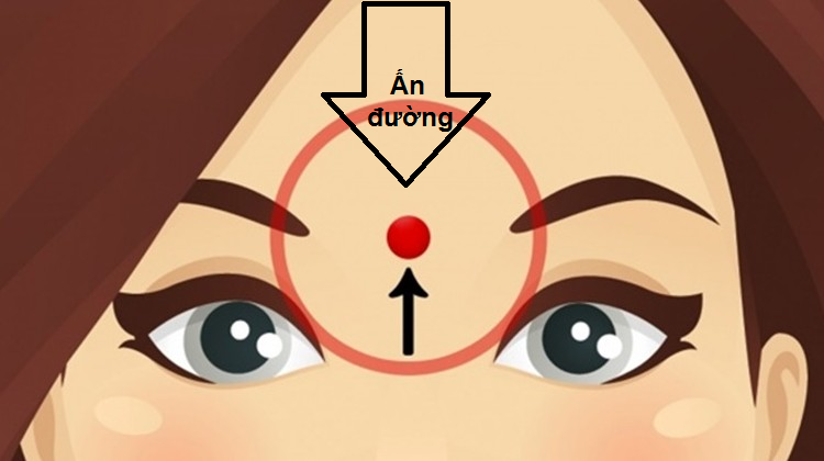 + Cách làm như sau: dùng ngón trỏ và ngón giữa đặt tại huyệt ấn đường (điểm chính giữa 2 lông mày trên trán), day huyệt này liên tục trong 30 lần, vừa day vừa nhắm mắt lại để thư giãn.